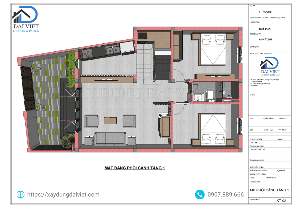 - Tâng 1: Phòng khách, bếp, 2 Phòng ngủ, 1 Wc