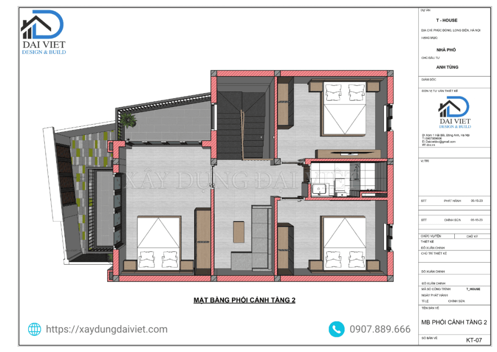 Nhà phố 2 tầng mái Thái hiện đại do Xây Dựng Đại Việt thiết kế và thi công trọn gói mang đến sự kết hợp hoàn hảo giữa phong cách hiện đại và không gian sống chan hòa với thiên nhiên. Đây là mẫu nhà lý tưởng cho những gia đình muốn sở hữu một tổ ấm vừa đẹp, tiện nghi, vừa tối ưu hóa diện tích sử dụng.