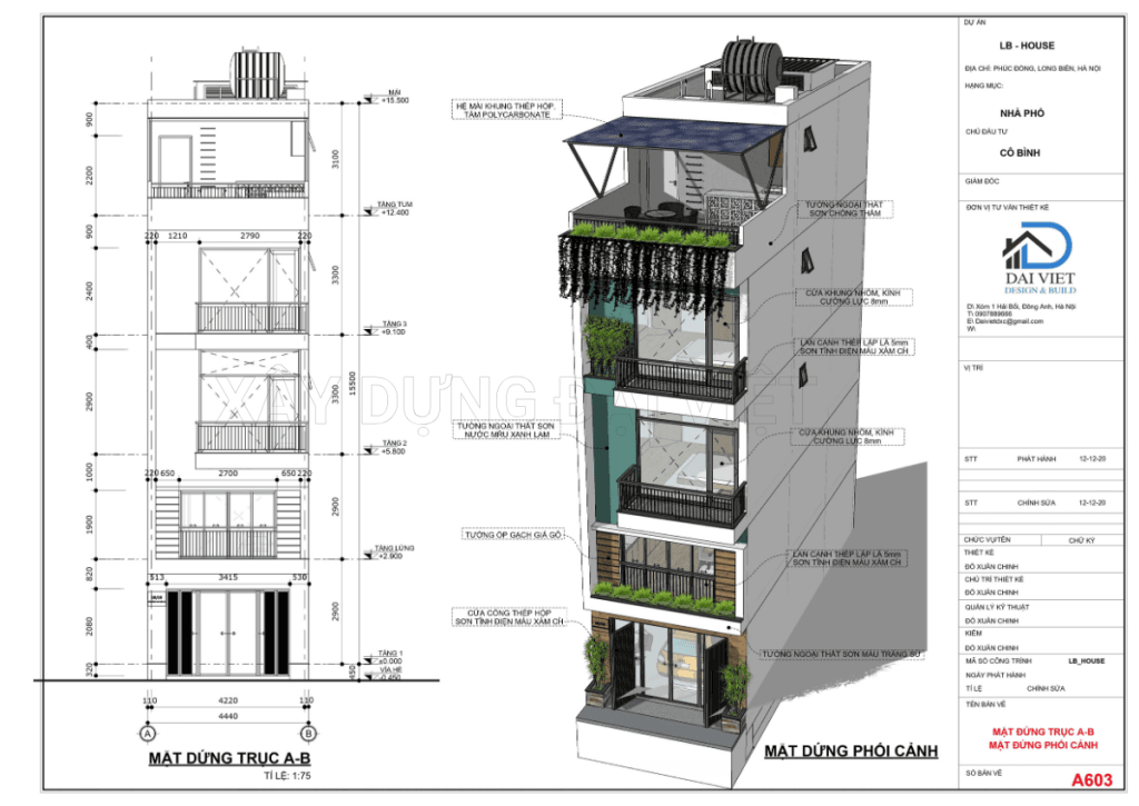 Mẫu nhà phố 4 tầng 1 tum do Xây Dựng Đại Việt thiết kế và thi công trọn gói là một biểu tượng của sự hiện đại và tối ưu không gian sống tại các khu đô thị đông đúc. Thiết kế không chỉ đáp ứng mọi nhu cầu sinh hoạt của gia đình mà còn mang đến vẻ đẹp kiến trúc hài hòa, gần gũi thiên nhiên.