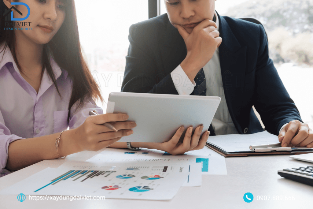 Quý anh chị sẽ được các kiến trúc sư Xây Dựng Đại Việt trình bày mặt bằng thiết kế cơ sở và phân tích giải pháp liên quan. Cũng như tham khảo thêm thiết kế kiến trúc, xem thiết kế 3D ngoại thất để dễ dàng hình dung toàn bộ công trình. Quy trình thiết kế nhà chỉ kết thúc khi chủ nhà và kiến trúc sư thống nhất về các phương án điều chỉnh sao cho phù hợp nhất.